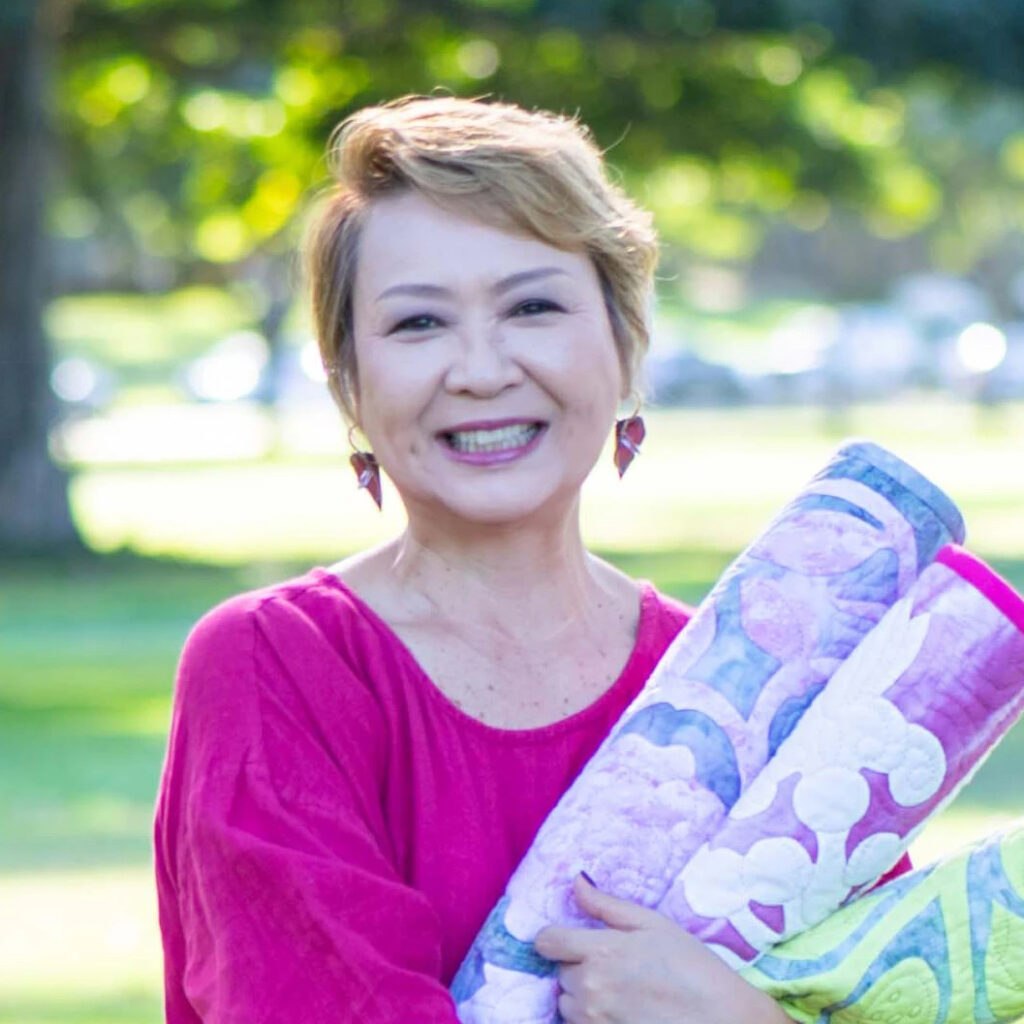 ハワイの植物とそれを取り巻く風や光、温度や湿度など空気感を表現することを得意とする。現在グラフィックデザインの仕事を続けながら月に15のクラスを持ち、アメリカのキルトアカデミーでも講師を務める。