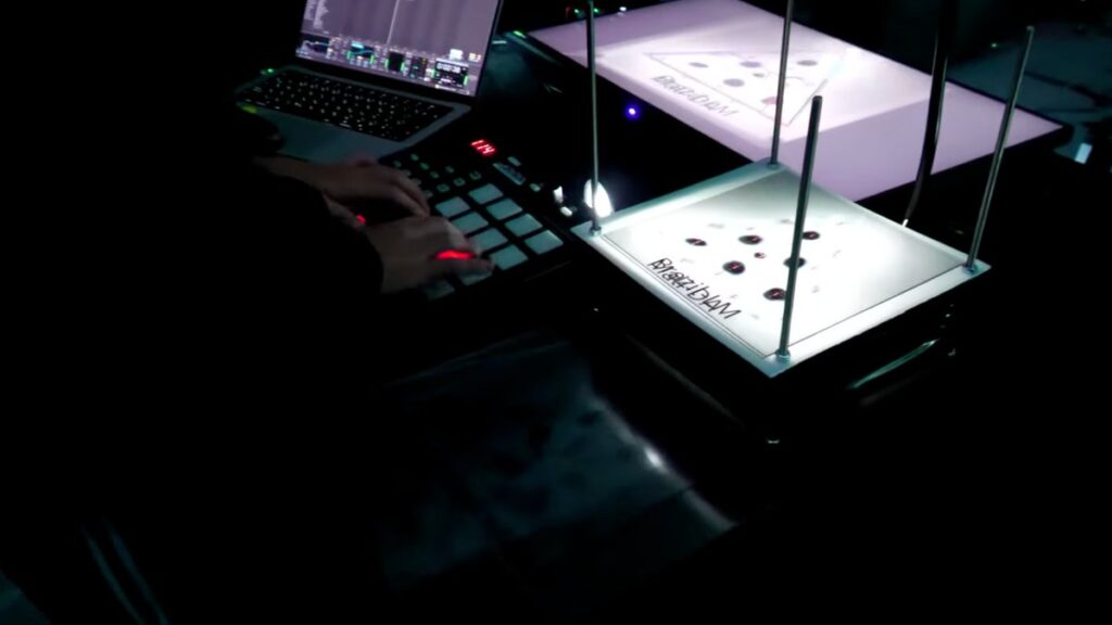 作品名:“Re:Rhythm: Cross-Cultural Rhythm Recalculation System”/Kensho Muraishi, Ryoho Konayashi, Yuta Uozumi, Shinya Fujii /本パフォーマンスは、Jacobyら(Nat Hum Behav, 2024)の各国のリズム特性データをもとに「リズムトライアングル」を読み取り、暗部方向へのポイント移動によって異文化の拍感を連続的にモーフィングさせる作品です。ドラマーはシステムが生成する変化する拍に応答して演奏し、文化・テクノロジー・身体が交差する共同的な音楽を生み出します。/Acknowledgements: This work was supported by the JST [Moonshot R&D Program] Grant Number JPMJMS2215 and the Ishii-Ishibashi Fund (The Keio University Grant for Early Career Researchers).