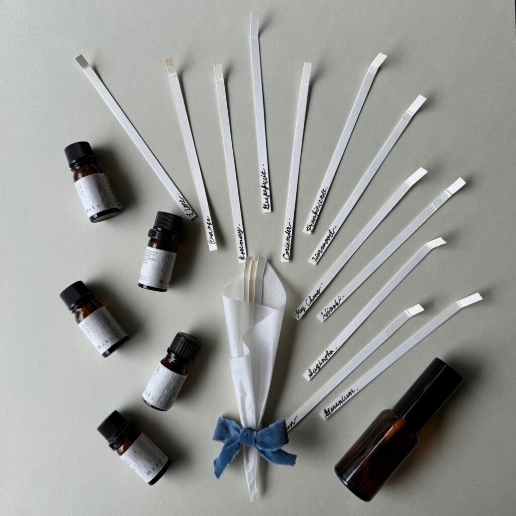 福祉施設でも実施した香りのワークショップ。10種の香りを嗅いで、自分の好きな香りのブーケを作ります。