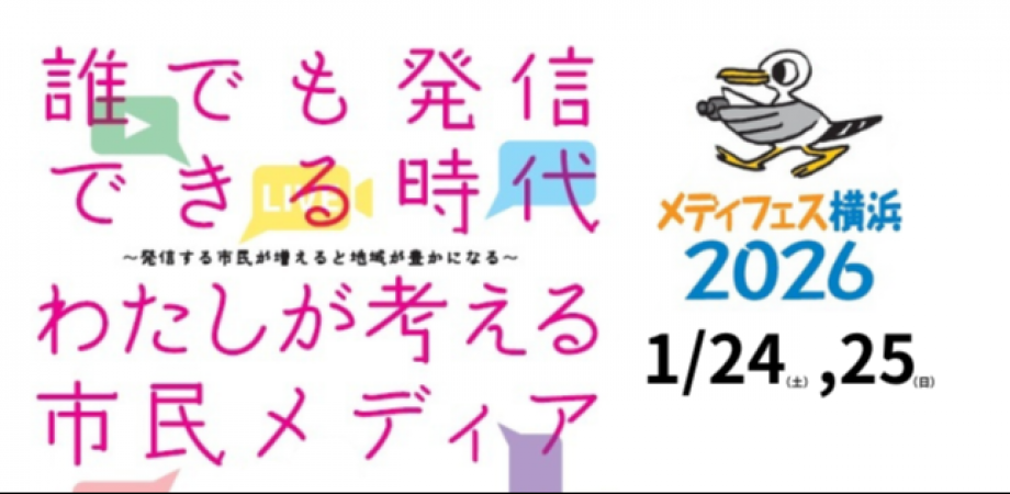 「市民メディア全国交流集会よこはま2026」は、1月24日(土)には東京都市大学横浜キャンパス、25日(日)には、日本丸メモリアルパーク訓練センターをメイン会場として開催、そのほか複数の会場で開催されます。