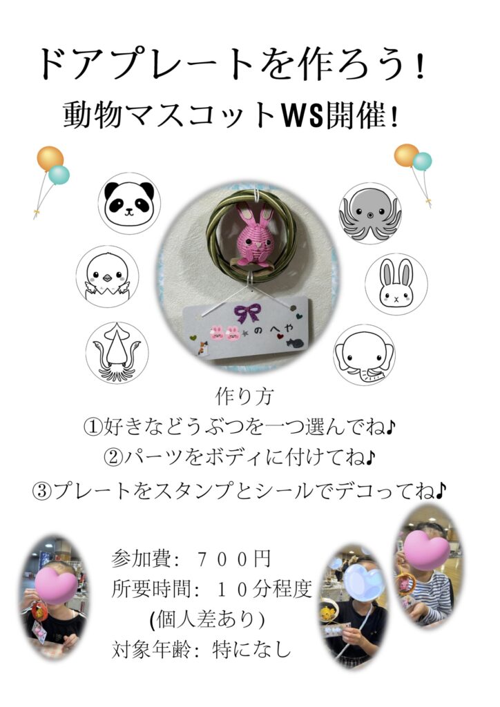 『ドアプレートを作ろう!動物マスコットWS開催!』