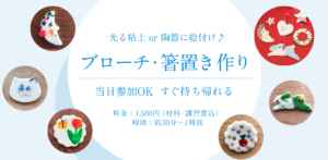 光る粘土 or 陶器に絵付け♪『自分だけの「ブローチ・箸置き」をつくろう』