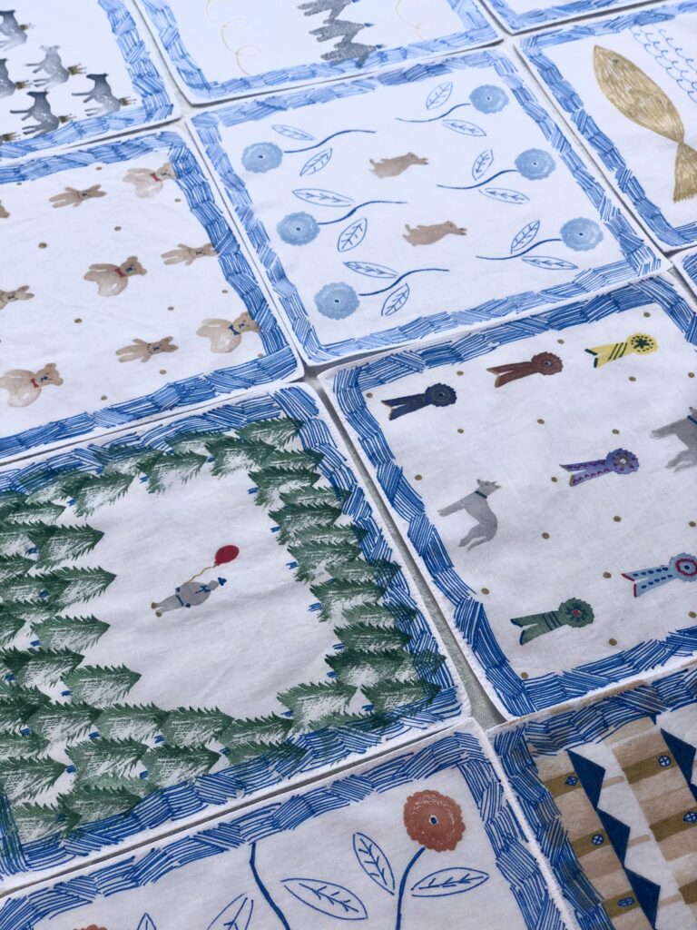 ハンカチとしてもご使用できますが、お部屋を彩る絵として額装して飾っていただいても素敵です。