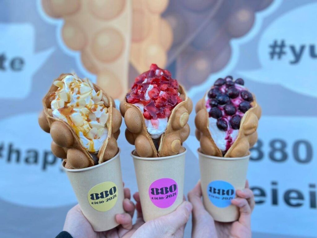 キッチンカーは、イタリアン、ブラジリアン、中華など世界のフードやスイーツが並びます。